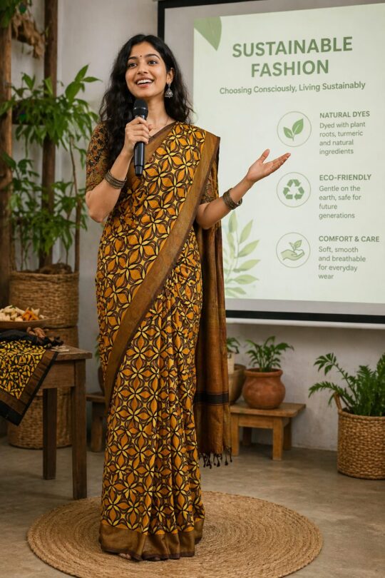 Loved this customised Bamboo fibre saree! It's the most beautiful way of feeling close to nature! I loved the innovative idea of making sarees from bamboo fibre! Beautiful texture, easy to drape and lightweight!! Thank you Parimal Ecohub!