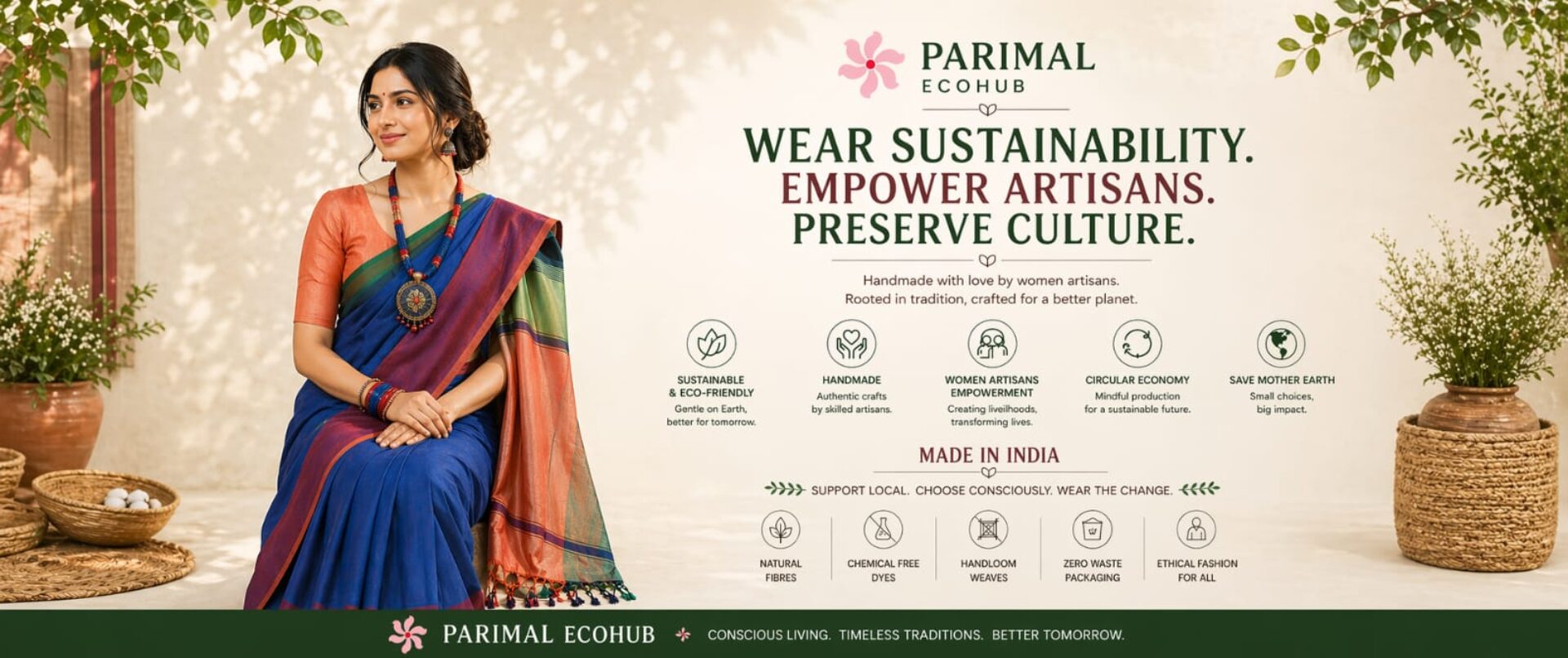 Bought a lovely bamboo fiber saree from Parimal Ecohub. The material is soft, falls very well and is a joy to drape. Loved the whole process of dealing with Smita of Parimal Ecohub. She sent the whole package lovingly wrapped in cloth bags tied with jute string - not a scrap of plastic anywhere! So thoughtful in such small and big ways!